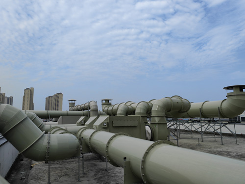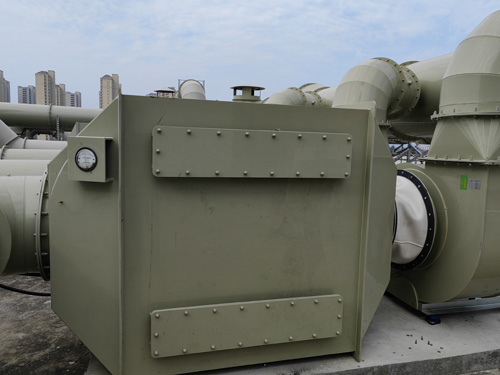科學試驗室有機廢氣治理 → 活力炭活性炭水過濾器 → 引軸流風扇 → 排放口